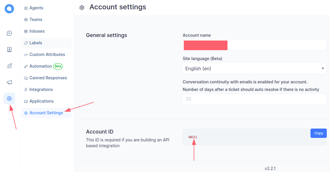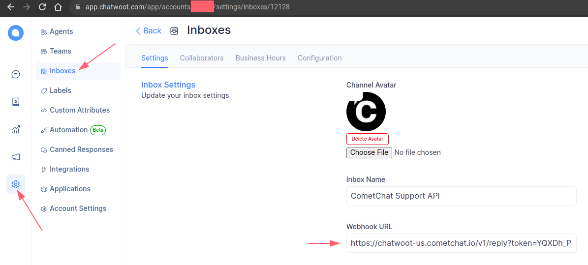 Go to Settings → Inboxes, open the target inbox, and copy the Inbox ID from the URL.