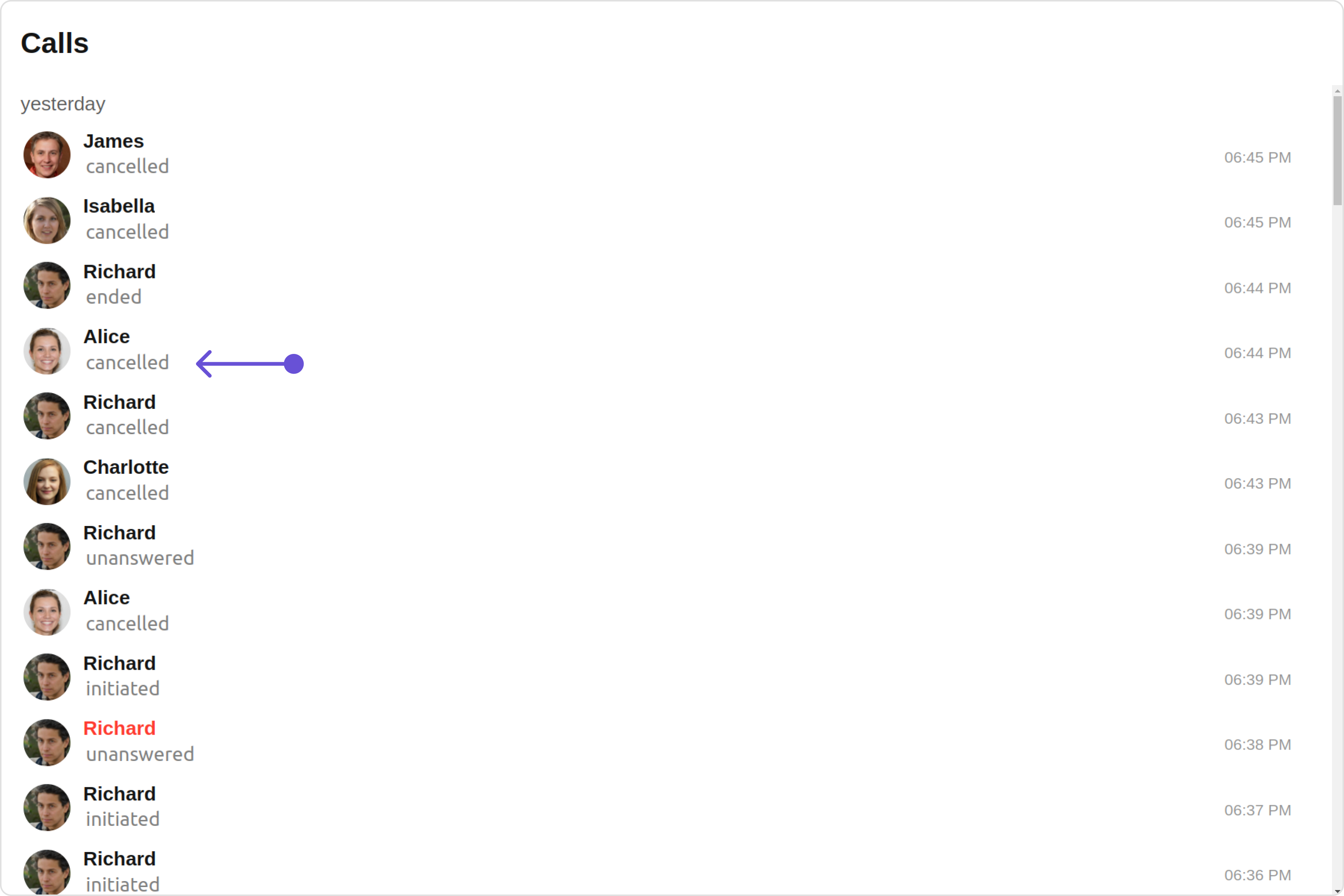 CometChatCallLogs is a Component that shows the list of Call Log available . By default, names are shown for all listed users, along with their avatar if available.